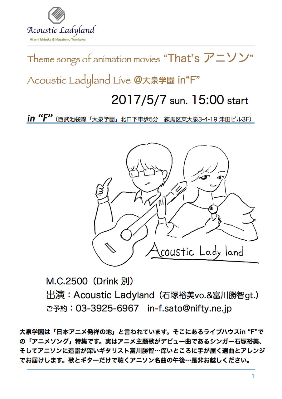 Acoustic Ladyland(石塚裕美&富川勝智)ってどんな音楽やっているんだろう?…という方は当ブログのライブレポート記事を御覧ください。今までのライブレポート御覧いただけます。