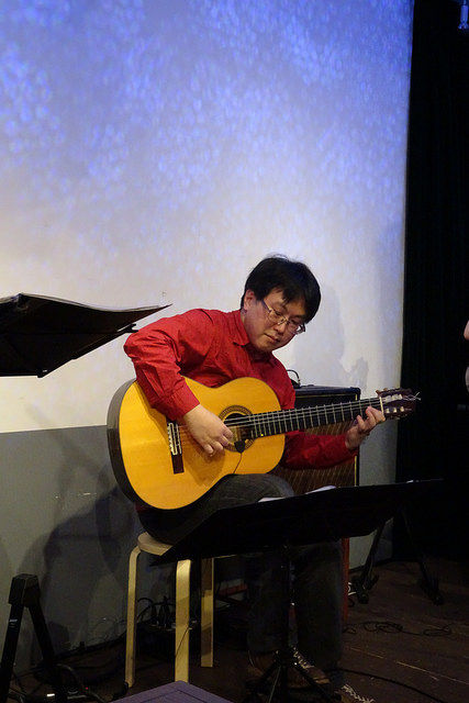 機材に詳しい人からすれば、「え〜?」という組み合わせですが、本番あとの録音を聴いたかぎりでは、相性抜群でした。会場にきていた数名の音楽関係者からも「クラシックギターらしい音だった」という意見をいただきました。