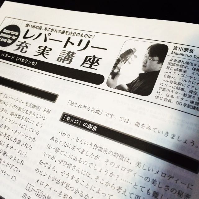 現代ギターの2016年3月号から「レパートリー充実講座」を4回連続で担当します。編集部から「是非富川先生らしいレパートリーを!」という嬉しいような悩ましいような依頼を受けました。