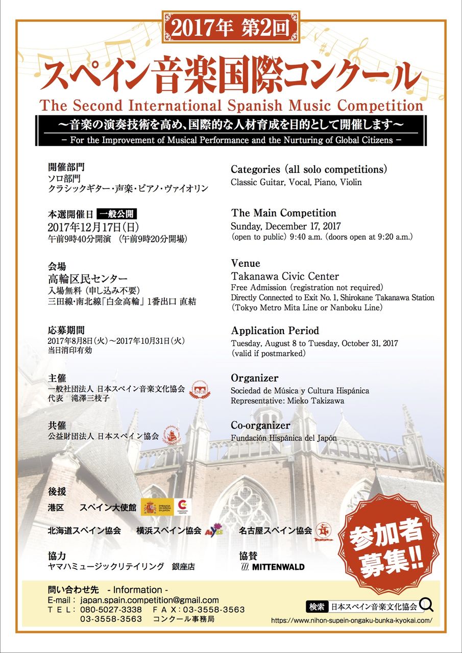 日本スペイン音楽文化協会のホームページに要項pdfなどダウンロードできます(こちら)。参加要項、課題曲、申し込み方法などまとめてありますので、是非ご覧ください。