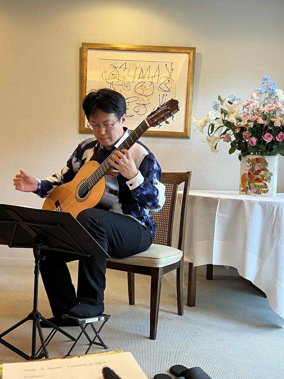 こういうサロンで弾くのはとても気持ちが良いものです。お客さんは10名程度。部屋に響くギターの音をほぼ「生」で聴いてもらえる。その部屋での鳴りを、自分の耳で確認が取れる。