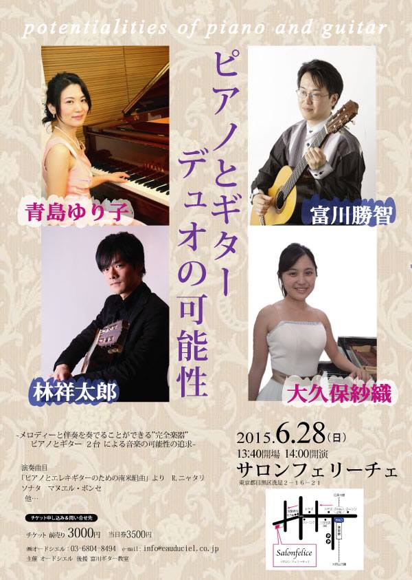 ほかにも古典期のディアベッリ(富川&青島)や、林くんのソロ、大久保さんのソロもある予定です。あと、「アランブラ宮殿の思い出」のピアノ&ギター版も演奏予定ですよ〜!