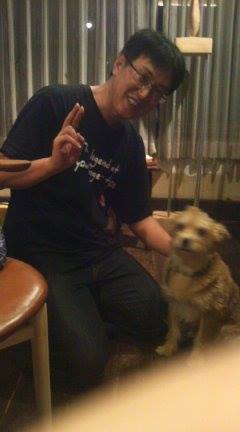 そこのお宅のワンちゃんと2ショット。なかなか人懐っこいワンコでした。