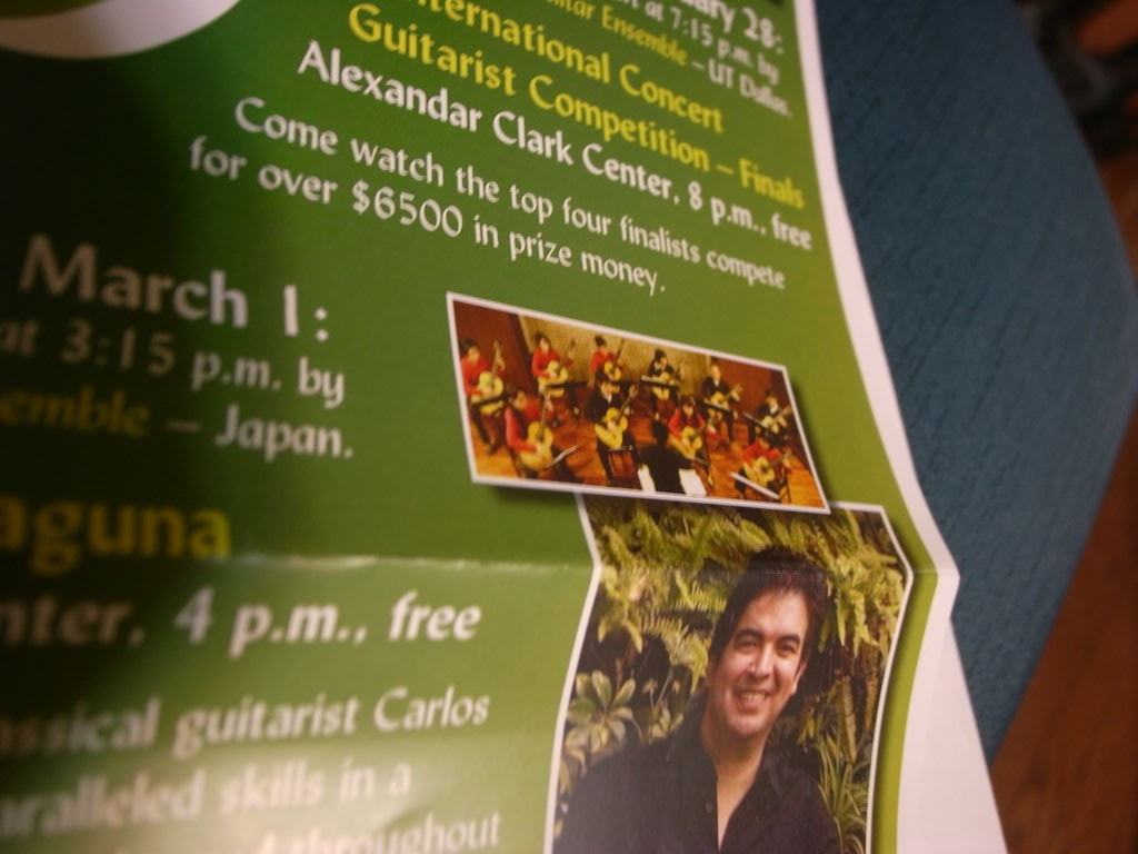 我々のアンサンブルは3月1日にホアン・カルロス・ラグーナ氏の前座として演奏。30分程度のプログラムを演奏。