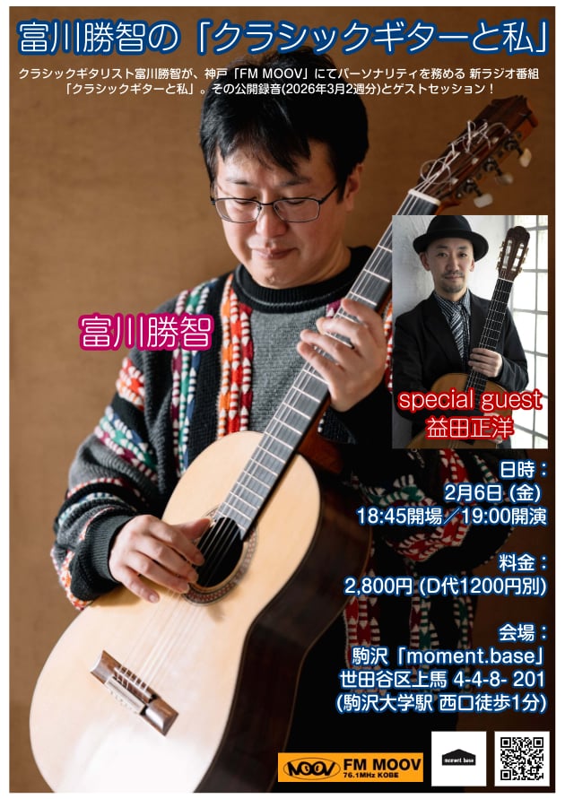 今週 2月6日(金)、私がパーソナリティを務めるFM MOOV ラジオ番組 「クラシックギターと私」 の公開収録を行います。