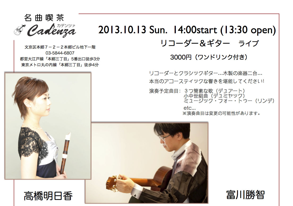 10月13日(日)は是非、本郷三丁目名曲喫茶カデンツァへ!